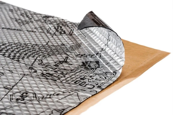 Самоклеящийся вибродемпфирующий материал, состоящий из алюминиевой фольги с тиснением и липкого полимерного слоя, защищенного антиадгезионной бумагой. Легко монтируется на неровные поверхности, не требует дополнительного нагрева при установке. Материал не впитывает влагу и не разлагается. Обладает свойством герметика. Температурный диапазон использования от -45 до +100°С. Допускается кратковременное воздействие температур до +190°С.
